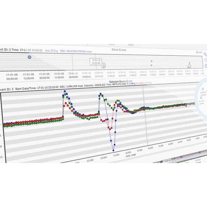 NEW: For extensive analysis and graphical representation of the data recorded in shock mode and to automatically create reports, the new MSR ShockViewer analysis software, which is specifically tailored to the requirements of transportation monitoring, is at your disposal.